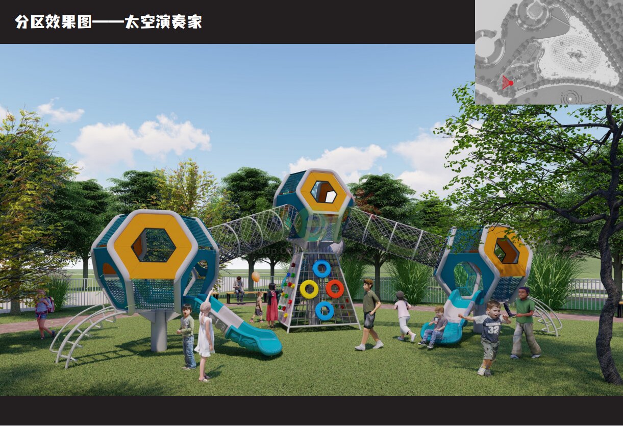 主要以組合滑梯、哈德拉、動物搖搖樂、微地形鉆洞為主。無頂篷主要是由兩大滑梯組合而成,