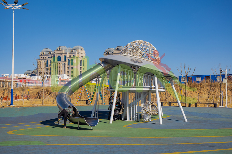 宇宙飛碟滑滑梯是孩子們最喜愛的秘密通道。區(qū)別于市面上傳統(tǒng)的塑料滑梯,立本這款滑梯外形上獨樹一幟,
