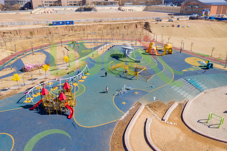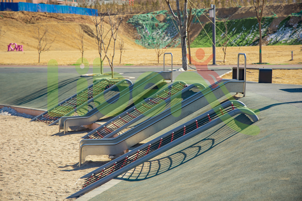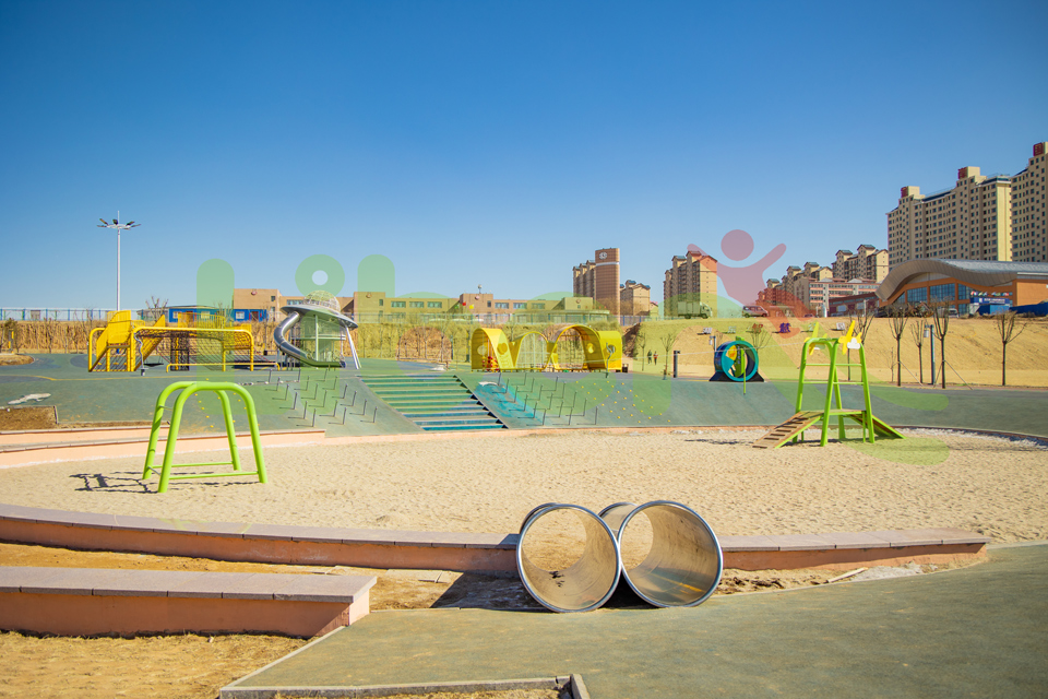 以高低起伏的山地形態(tài)打造的是星球山丘,小小山丘,孩子們可以在這上下爬越,體驗攀爬的樂趣,感受到速度與山地起伏的變化。