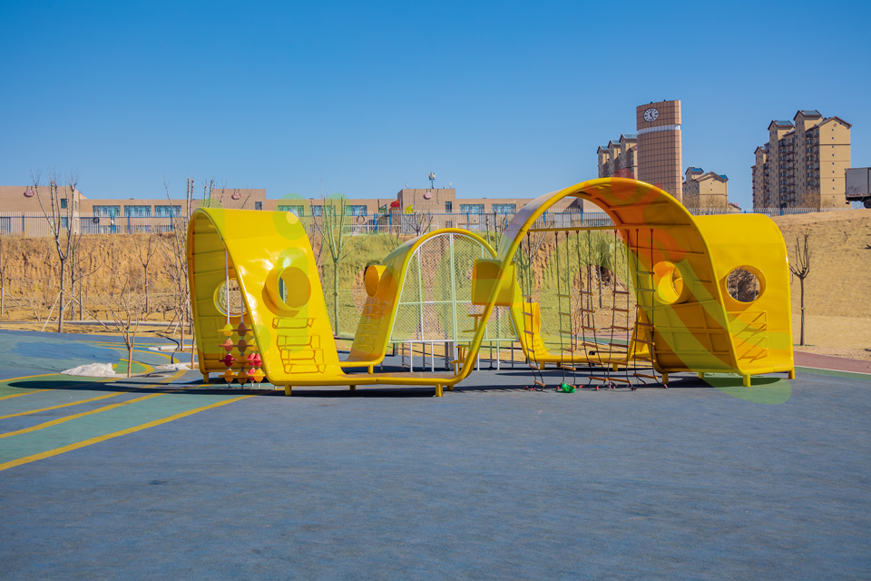 其中蘊含著豐富有趣的產(chǎn)品,秋千、爬網(wǎng)、攀爬架等各種鍛煉體能的產(chǎn)品融合在一起,大大增加了孩子探索星球奧秘的興趣。