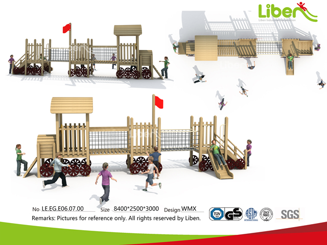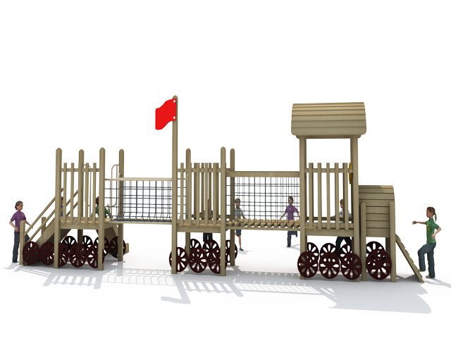木質(zhì)類材質(zhì)最大的優(yōu)點(diǎn)在于天然無毒害,原料的價(jià)格比較實(shí)惠,能夠根據(jù)兒童游樂設(shè)備的要求設(shè)計(jì)不同的類型。但是有一 個(gè)缺點(diǎn)就是因?yàn)槟举|(zhì)材質(zhì)的使用年限要遠(yuǎn)低于金屬類的材質(zhì)。