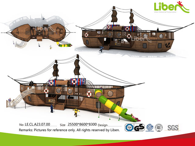 海盜船主題游樂(lè)設(shè)備通過(guò)了GS認(rèn)證,戶外久用耐磨,同時(shí)海盜船擁有獨(dú)特的外形設(shè)計(jì),集合了“走、跑、跳、投、攀”等動(dòng)作上的訓(xùn)練,適合3歲以上的孩子以及青少年玩耍。整款設(shè)備當(dāng)中使用的立柱采用的是厚壁為2.2mm的鍍鋅鋼管,鋼管的材質(zhì)均符合國(guó)際專業(yè)認(rèn)證,并且整體的加工成型之后技術(shù)人員進(jìn)行了除油、拋光等處理,使得產(chǎn)品可以正常保證實(shí)年不褪色。