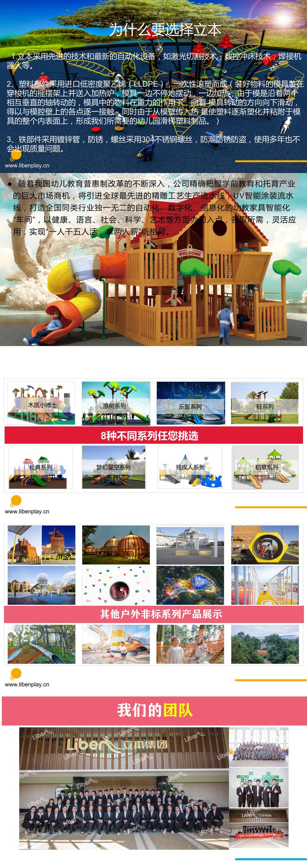 立本夢幻星空系列小博士參考歐美流行款式,結(jié)合國內(nèi)市場的特點,巧妙的將跑、鉆、爬、攀、滑、翻、滾等功能性動作溶于兒童戶外組合滑梯之中,既鍛煉了孩子們的平衡、獨立協(xié)調(diào)和創(chuàng)造能力,也有利于孩子們的自我保護意識。