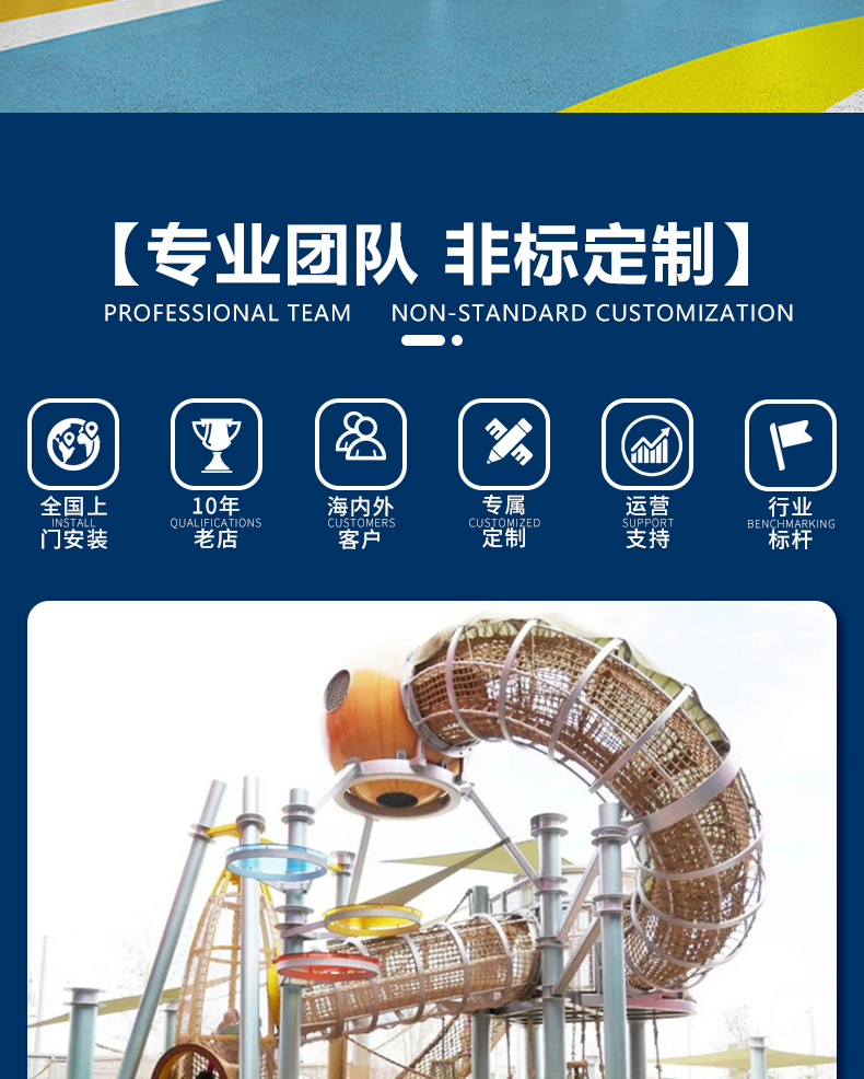 立本體能攀爬系列參考歐美流行款式,結合國內市場的特點,巧妙的將跑、鉆、爬、攀、滑、翻、滾等功能性動作溶于戶外體能攀爬之中,既鍛煉了孩子們的平衡、獨立協(xié)調和創(chuàng)造能力,也有利于孩子們的自我保護意識。