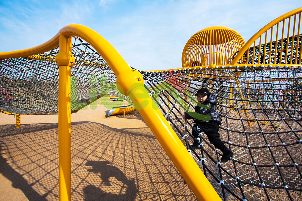 4、小孩在攀爬網(wǎng)上需要愛護器材。