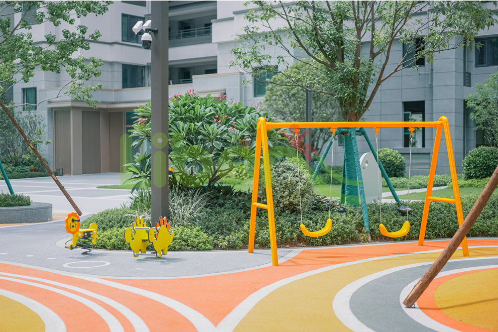 秋千也是大人孩子都愛(ài)玩的游樂(lè)設(shè)備。需要注意的是,秋千在來(lái)回蕩的過(guò)程中很容易傷到人。因此,如果小區(qū)有獨(dú)立的小片區(qū)域,可以單獨(dú)放置一個(gè)秋千,但如果要和其他游樂(lè)設(shè)備放置在一起,那么最好是選擇擺動(dòng)范圍較小的座椅秋千。