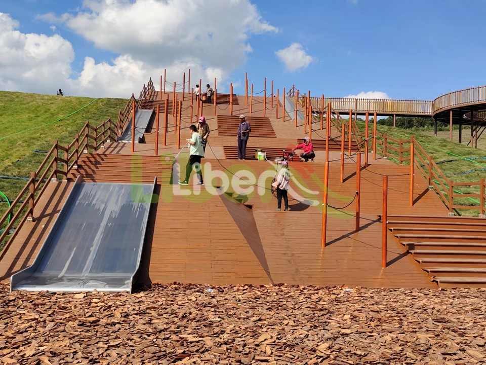 這種類型的設(shè)備非常刺激,是在離地面高度較高的空中進(jìn)行障礙攀爬和高空速降等玩法。比如“空中漫步”“高空繩索挑戰(zhàn)”等挑戰(zhàn)項目,玩這類游樂設(shè)備兒童的年齡范圍通常在8到13歲之間,不建議7歲以下的兒童玩這種類型。